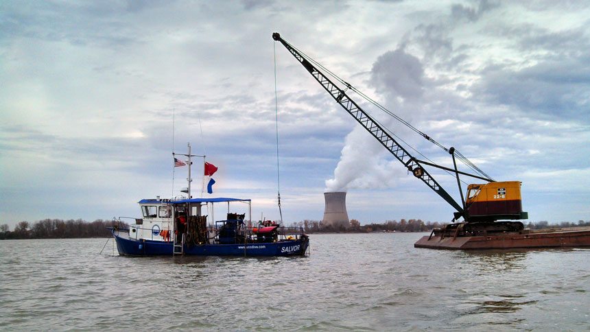 In the spring of 2013 Underwater Construction Corporation (UCC) worked with a Midwest nuclear station to develop a repair plan for the sites raw water intake structure. In July 2013 the formal award was given whereby the mobilization of UCC’s crew and work vessel the “Salvor” began.